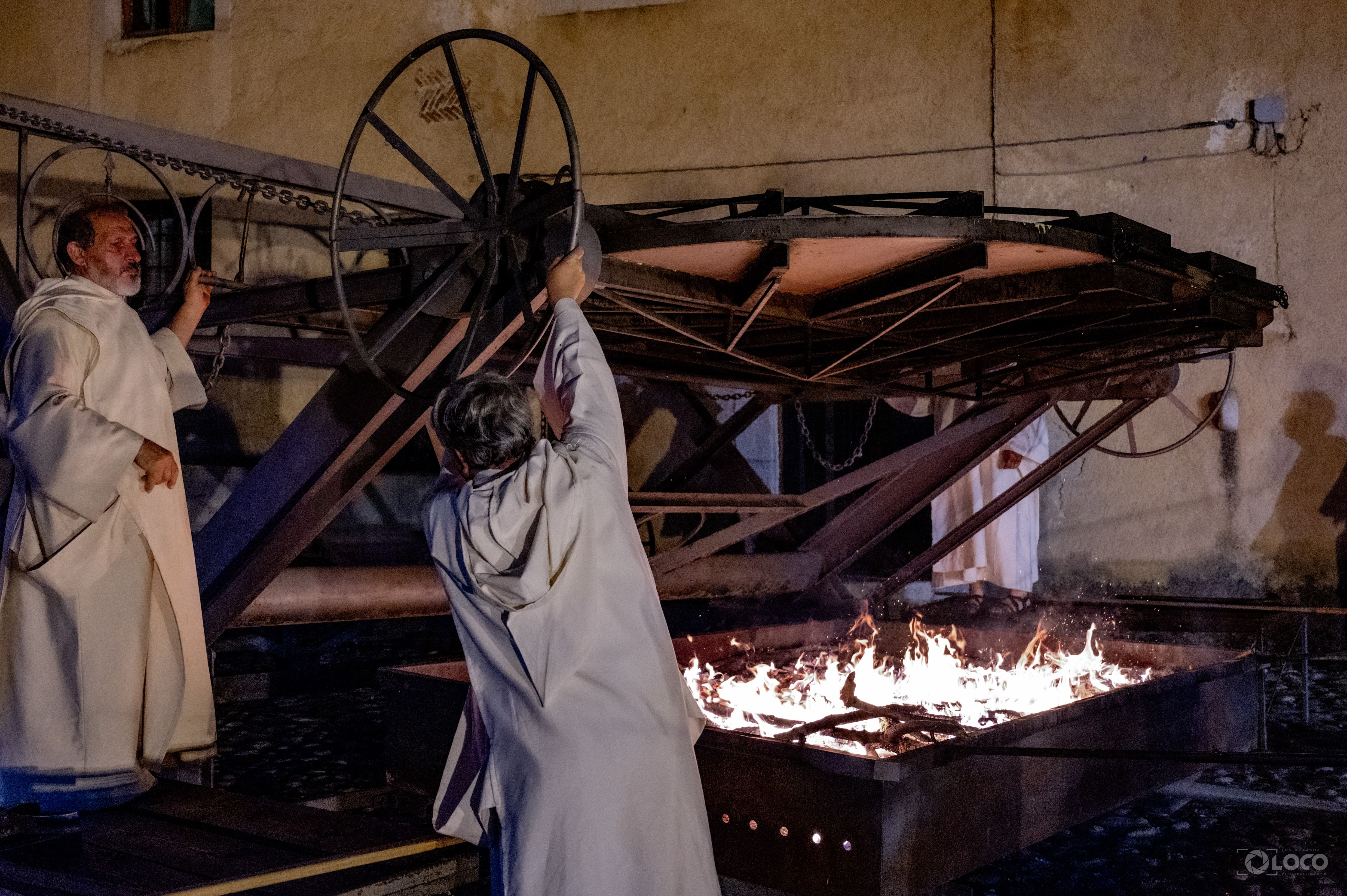 A seguire ha inizio l’accensione del fuoco sotto la grande padella. Un manufatto che lascia increduli per le dimensioni e per i congegni che ne permettono l’utilizzo, costruita in acciaio dagli artigiani del luogo e ispirata ai principi leonardeschi, sapientemente gestita da Leonardo Lombardi, socio storico della Pro Loco Padula, con il contestuale inizio delle attività delle ovarole che hanno iniziato ad aprire, sbattere e preparare le 1000 uova da cuocere nella grande padella.